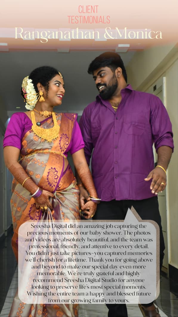 Subsequently, in 1973, Mr. BALAKRISHANAN established Sreesha Studio, and a secondary location was inaugurated in the year 2000, situated in Choolaimedu and Nelson Manickam Road. This esteemed family business has been under the stewardship of Sreelesh for the past 25 years.